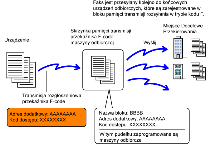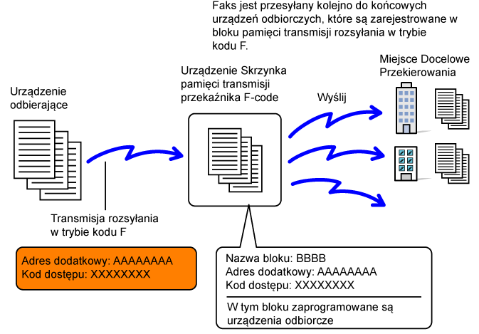 użytkownika, wysłanie faksu do urządzenia rozsyłającego, które znajduje