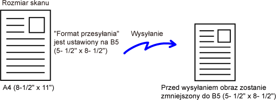 Jeśli ustawiony format wysyłania jest mniejszy od formatu skanowania,
