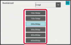 Jeśli ustawienie nie jest prawidłowe, wysłany obraz może być nieodpowiedni. Po wprowadzeniu ustawień naciśnijWybranie ekspozycji i typu obrazu oryginału