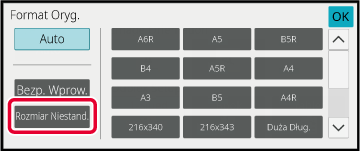 Po wprowadzeniu ustawień naciśnij dwukrotnie przyciskCzęsto używane niestandardowe formaty oryginału