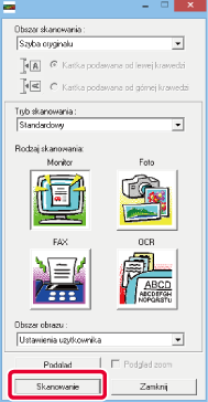 również ustawić obszar skanowania w oknie podglądu, korzystając
