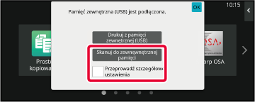 Gdy wyświetli się ekran wyboru czynności, naciśnij [Skanuj do zewnęwnętrznej pamięci].