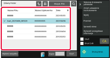 Po wybraniu folderu zostaną wyświetlone zawarte w nim pliki. Wybierz plik, który chcesz przywołać.Wybierz element operacji.