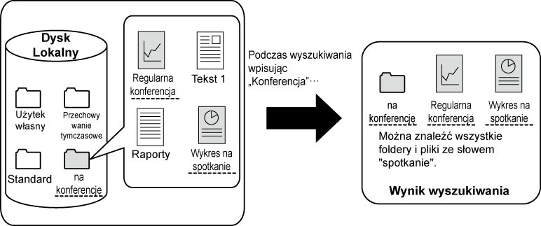 Wyszukiwanie jest możliwe tylko wtedy, gdy znany jest fragment nazwy pliku lub folderu. W razie potrzeby, określając zakres wyszukiwania, można również wybrać folder.