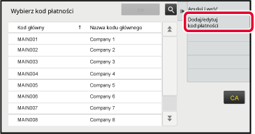 Aby zarejestrować nowy subkod, naciśnij przycisk subkodu [Wybierz z Listy].Naciśnij przycisk [Dodaj/edytuj kod płatności]na panelu sterowania.