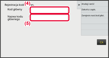 Wprowadź kod, używając maksymalnie 32 jednobajtowych znaków.Naciśnij pole w sekcji [Nazwa kodu głównego], aby wprowadzić nazwę kodu głównego.