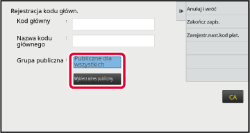 Publiczne dla wszystkich: Rejestruje kod płatności jako publiczny, który może być używany przez wszystkich użytkowników urządzenia.Wybierz grupę, która zostanie dodana do publicznej