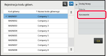 Wybierz kod główny, który chcesz usunąć, a następnie naciśnij [Kasowanie] na panelu sterowania.