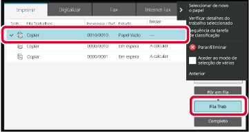 Premir a tarefa a parar ou eliminar e, em seguida, premir [Parar/Eliminar] no painel de ação.