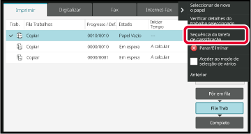 Premir a tarefa para processamento prioritário e, em seguida, premir [Sequência da tarefa de classificação] no painel de ação.