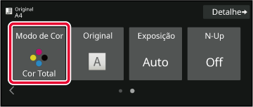 A máquina detecta automaticamente se cada original é a cores ou a preto e branco e alterna o modo adequadamente (cor total para um original a cores ou preto e branco para um original a preto e branco). |
