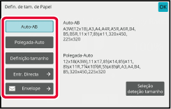 Quando alterar o tipo de papel ao premir a tecla [Selecionar papel], clique no separador [Tipo] e selecione o tipo de papel.Toque na tecla [Tamanho] e na tecla que corresponde ao tamanho do papel colocado.