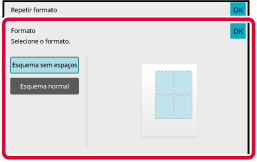 Toque na tecla [Esquema sem espaços] ou [Esquema normal] e depois na tecla [OK].Especifique a linha de partição da repetição.