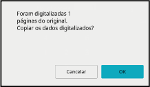 O número apresentado é o número de folhas originais digitalizadas, e não o número de páginas originais digitalizadas. Por exemplo, quando efectuar uma cópia de dois lados utilizando um original, aparecerá o número "1" para indicar que foi digitalizada uma folha original, e não o "2" para indicar a página da frente e a página do verso.Toque na tecla [OK] para iniciar a cópia.