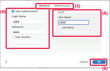 - Introduza o nome de utilizador e o nome do trabalho, como