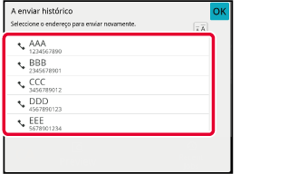 No modo FácilNo ecrã base ou livro de endereços, tocar em [A enviar histórico] no painel de ações.