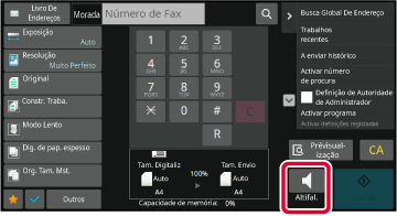 Depois de tocar na tecla [Altifalante], pode tocar na tecla [Volume Coluna] para ajustar o volume do altifalante.