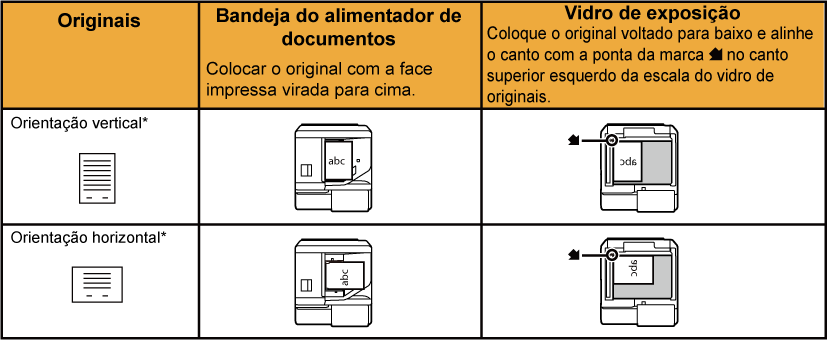 Coloque o original na bandeja do alimentador de documentos do alimentador automático de documentos ou no vidro de exposição.Aviso