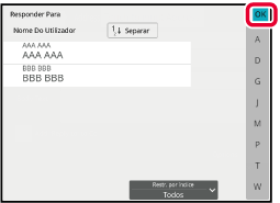 Tocar na tecla que pretende usar para o endereço do destinatário (de resposta).