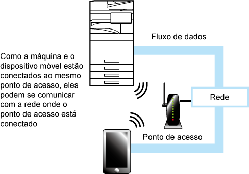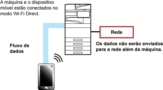 via Wi-Fi. Neste modo, a comunicação com a rede à qual a máquina