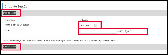 Para mais informações sobre a palavra-passe e outras necessárias para autenticação do utilizador, contactar o administrador da máquina.