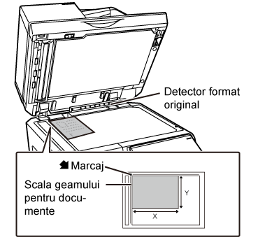 Nu aşezaţi niciun alt obiect sub detectorul de format al originalului.Închideţi alimentatorul automat de documente.