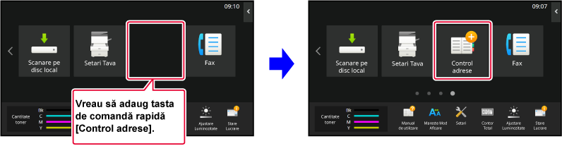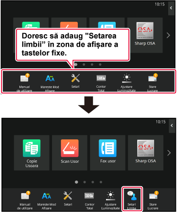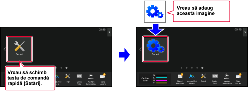 Tasta de comandă rapidă se va muta în locaţia atinsă.După finalizarea setărilor, atingeți tasta [Deconectare].