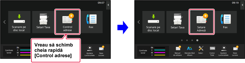 Introduceţi parola de administrator.Atingeţi tasta de comandă rapidă pe care doriţi să o mutaţi şi apoi atingeţi [Tasta Mutare].