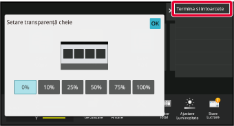 Setările sunt salvate în echipament şi aplicate.Puteți modifica transparența tastelor de