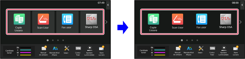 Setările sunt salvate în echipament şi aplicate.Într-un mod normal, cum ar fi Copiere sau