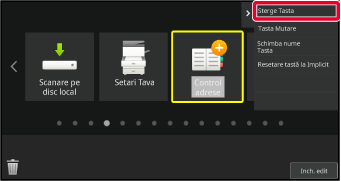 Introduceţi parola de administrator.Atingeţi tasta de comandă rapidă pe care doriţi să o ştergeţi şi apoi atingeţi [Sterge Tasata].