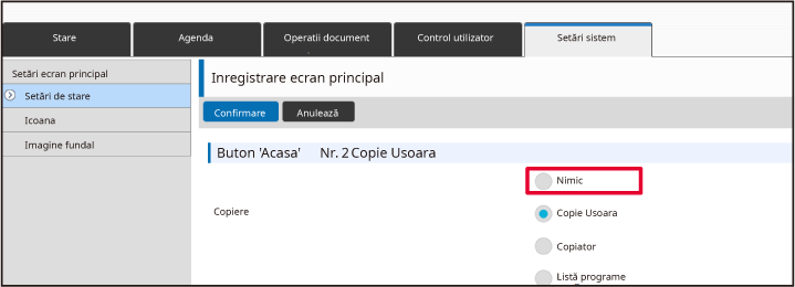 Selectaţi [Nimic] şi executaţi clic pe butonul [Confirmare].