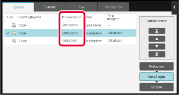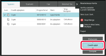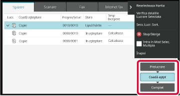 [Prelucrare], [Coadă aştpt] sau [Complet] în funcţie de necesităţi.