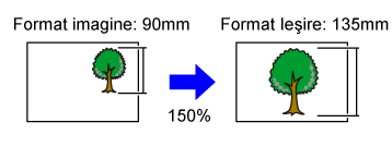 Reducerea sau mărirea raportului este selectată automat, pe baza formatului originalului şi a dimensiunii selectate a hârtiei.Această secţiune explică modul de specificare