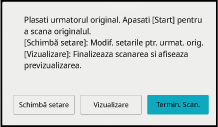 Repetaţi această operaţiune până ce au fost scanate toate originalele.Repetaţi până când toate paginile au fost scanate şi verificaţi imaginea de previzualizare din ecranul de previzualizare.