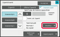 Numărul total de coli de inserţie se afişează lateral faţă de tasta [Confirmă]. Repetaţi aceşti paşi pentru numărul colilor de inserţie.Atingeți tasta [Modifica].