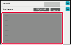 Tasta [Text Presetat] vă permite să selectaţi pentru imprimare