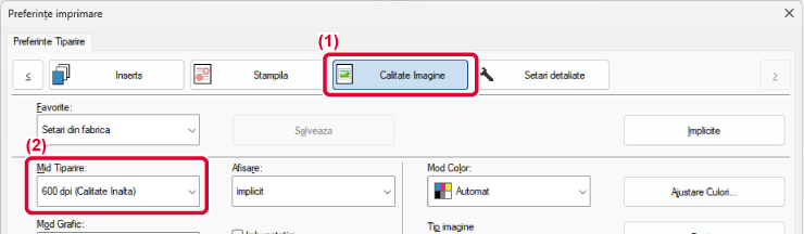 Pentru "Mod imprimare" (rezoluţie) sunt disponibile