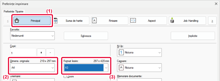 când în echipament nu este încărcată hârtie de aceeaşi dimensiune