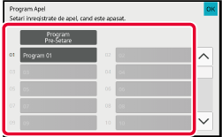 Conform funcţiei memorate în program, introduceţi originalul în tava de alimentare cu documente a alimentatorului automat de documente sau pe geamul pentru documente.Atingeți [Program apelare] pe panoul de acțiuni.