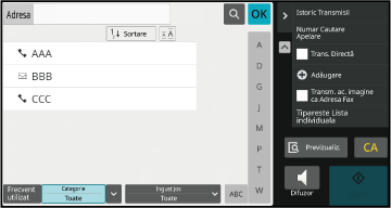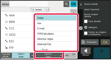 înregistrate se activează pentru căutare alfabetică şi pentru căutare
