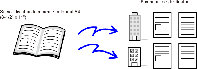 Introduceţi adresa fiecărei filiale. ![]() Selectaţi Scanare tip carte. ![]() Specificaţi Ştergere. ![]() Atingeți tasta [Start]. Scanați și trimiteți originalul. |