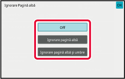 Atingeți tasta [Ignorare pagină albă] sau [Ignorare pagină albă şi umbre].