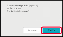 Se va auzi un sunet care indică faptul că scanarea a luat sfârşit.După ce scanarea s-a încheiat, verificaţi numărul colilor originalului şi numărul colilor de transmis, apoi atingeţi scurt tasta [OK] pentru a porni transmiterea.