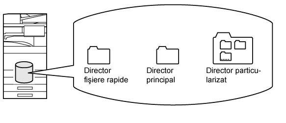 Un director particularizat creat în prealabil poate fi selectat ca "Fişierul meu" sau puteţi crea un director nou ca "Fişierul meu". Când "Fişierul meu" a fost configurat şi este utilizată autentificarea utilizatorilor, "Fişierul meu" va fi selectat întotdeauna ca destinaţie pentru [Fişier] şi [Stocare fişier]. |