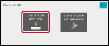 Puneţi originalul în tava de alimentare cu documente a alimentatorului automat de documente sau pe geamul pentru documente.Atingeți tasta [Scanare pe disc local].