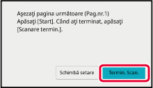 Pentru a verifica un document în previzualizare, atingeți uşor tasta [Previzualiz.].După scanarea tuturor originalelor, atingeţi scurt tasta [Termin. Scan.].