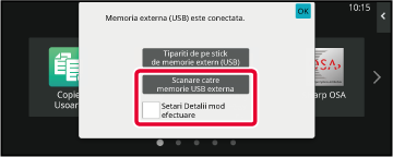 Atingeți [Scanare catre memorie USB externa] pe panoul de acțiuni.