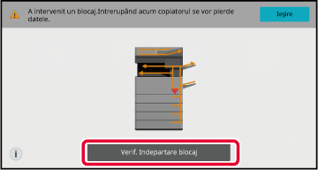 În acest caz, atingeţi tasta [Verif. Indepartare blocaj] de pe panoul tactil.
