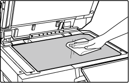Очистителем для стекол очистите область сканирования документа на стекле сканера.